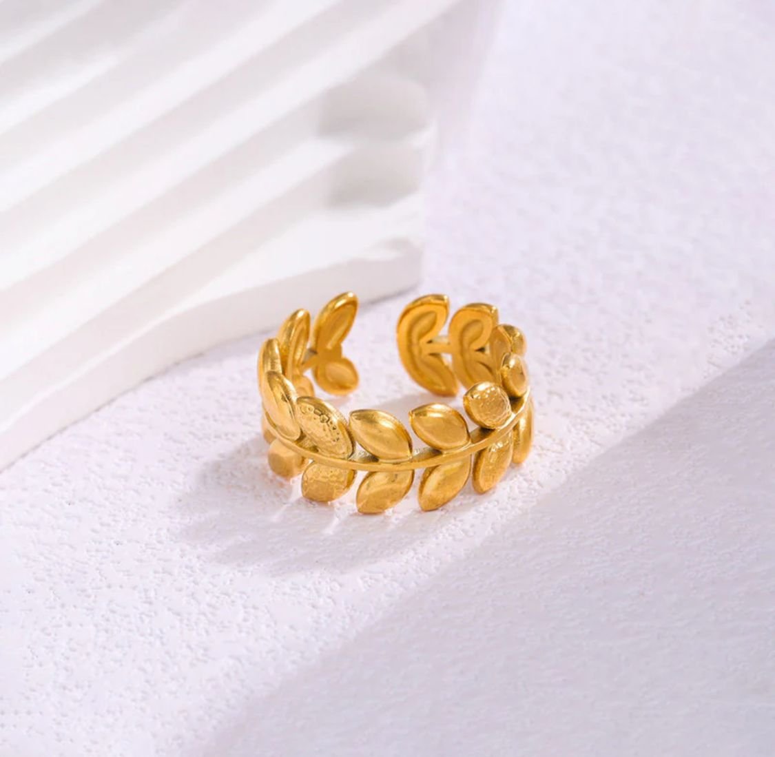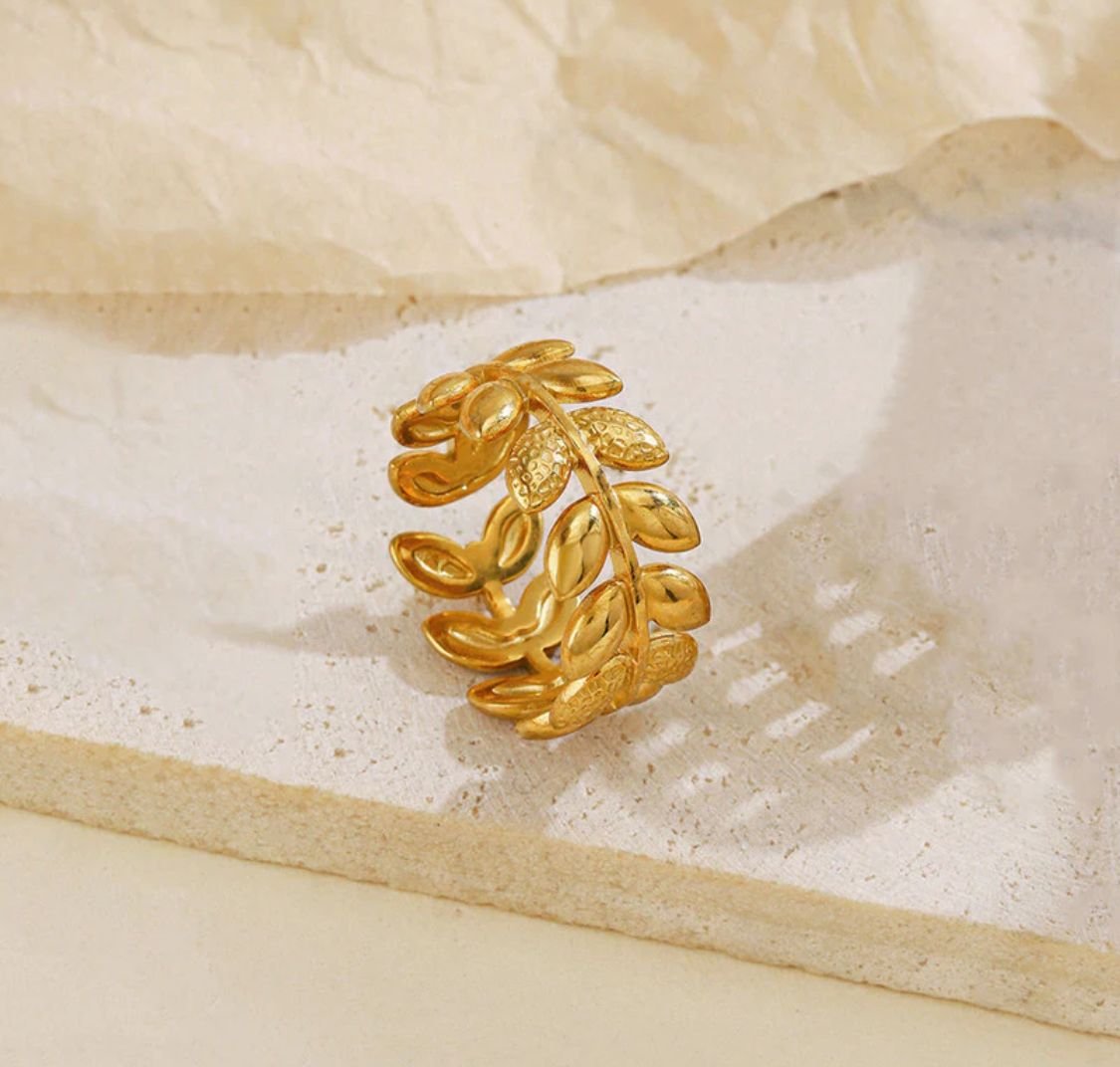 Crafted from premium stainless steel and finished with high-quality gold plating, this ring features an anti-tarnish coating to ensure long-lasting shine and durability. The adjustable design provides a flexible and comfortable fit, making it suitable for different finger sizes.