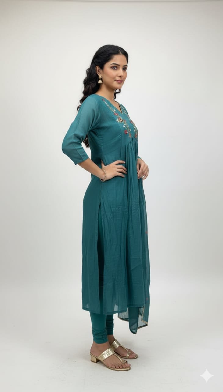 Perfect for weddings, festive celebrations, and special family occasions, this churidar offers a beautiful blend of comfort, elegance, and timeless tradition.
